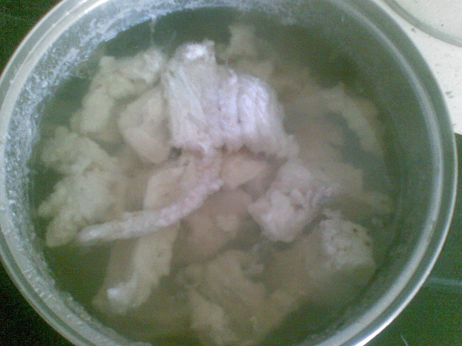 1. Filetuję rybę (nacinam od kręgosłupa, prowadząc nóż od głowy w kierunku ogona, odcinam z filetów płetwy oraz zrywam skórę).